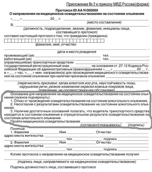 Отказ от МО. 12.26 КоАП РФ